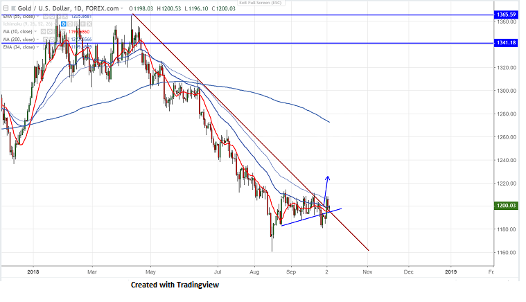 The near term support is around $1180 and any violation below will drag the commodity down till $1170/$11620.