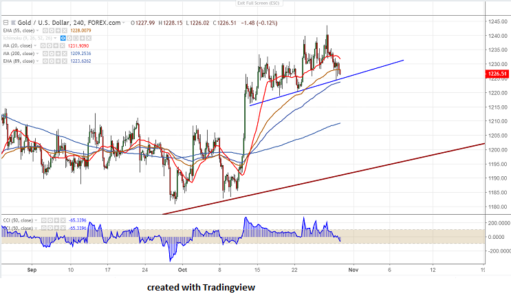 Gold is trading slightly weak and lost more than $15 from high of $1243.It is trading slightly below 10 day MA on account of strong US dollar.