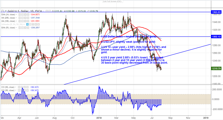 - US 10 –year yield – 2.98% (hits high of 3.016% and shown a minor decline). It is slightly negative for gold.