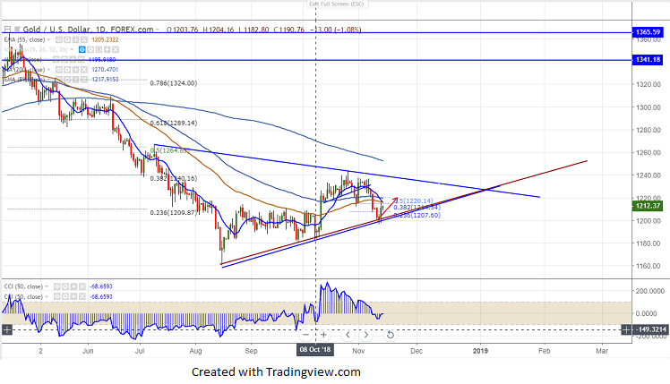 Gold recovered till $1216 almost $20 from low of $1196 on account slight weakness in USD and sell-off in equity market.