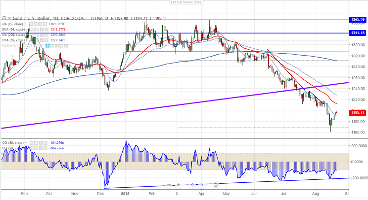 The yellow metal has shown a good jump of almost $10 from the yesterday’s low of $1187. Gold hits high of $1197.80 and is currently trading around $1196.25.