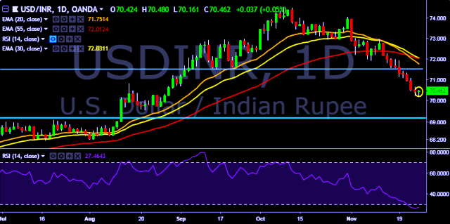 We prefer to take long position on USD/INR only above 70.64, stop loss at 70.15 and target of 71.00/71.20 mark.