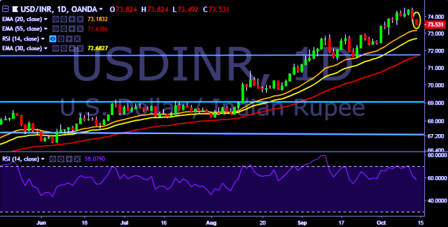 We prefer to take long position on USD/INR only above 73.82, stop loss at 73.50 and target of 74.57.
