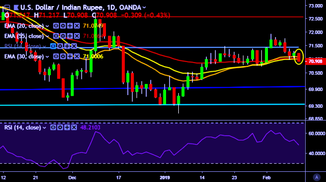 We prefer to take short position on USD/INR around 70.95, stop loss at 71.22 and target of 70.45.
