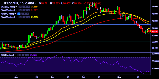 We prefer to take short position on USD/INR around 70.60, stop loss at 70.85 and target of 70.43/70.22.