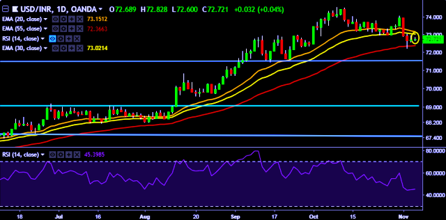 - It made intraday high at 72.82 and low at 72.60 marks.