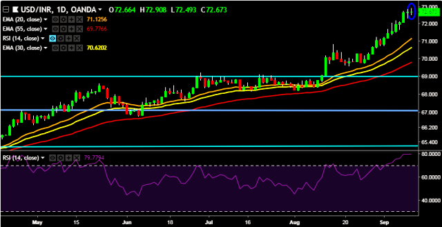 - It made intraday high at 72.90 and low at 72.49 marks.