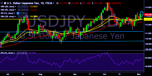 - It made intraday high at 113.24 and low at 113.10 levels.