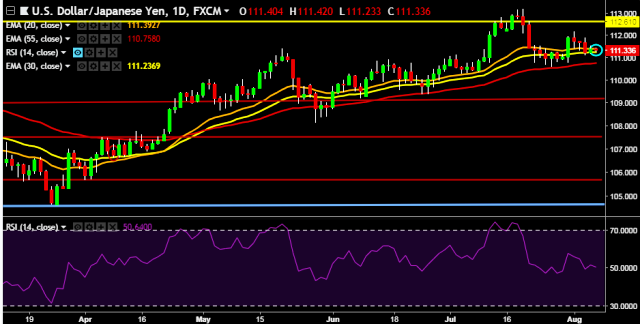 - It made intraday high at 111.42 and low at 111.23 levels.