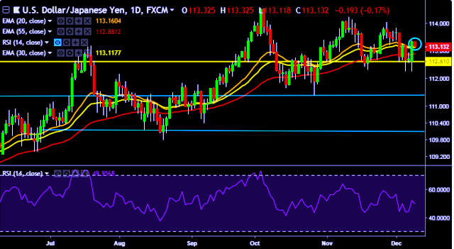 - It made intraday high at 113.32 and low at 113.07 levels.