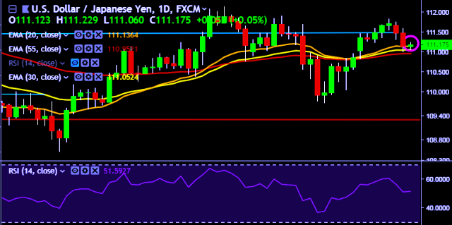 - It made intraday high at 111.23 and low at 111.06 levels.