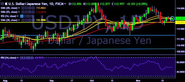 - It made intraday high at 113.08 and low at 112.87 levels.