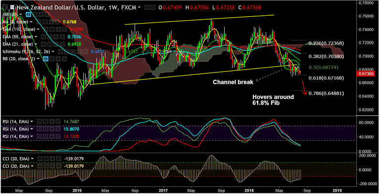 - On the flipside, retrace into channel could see retrace upto 21W-EMA at 0.6929. Break above will invalidate any bearish bias.