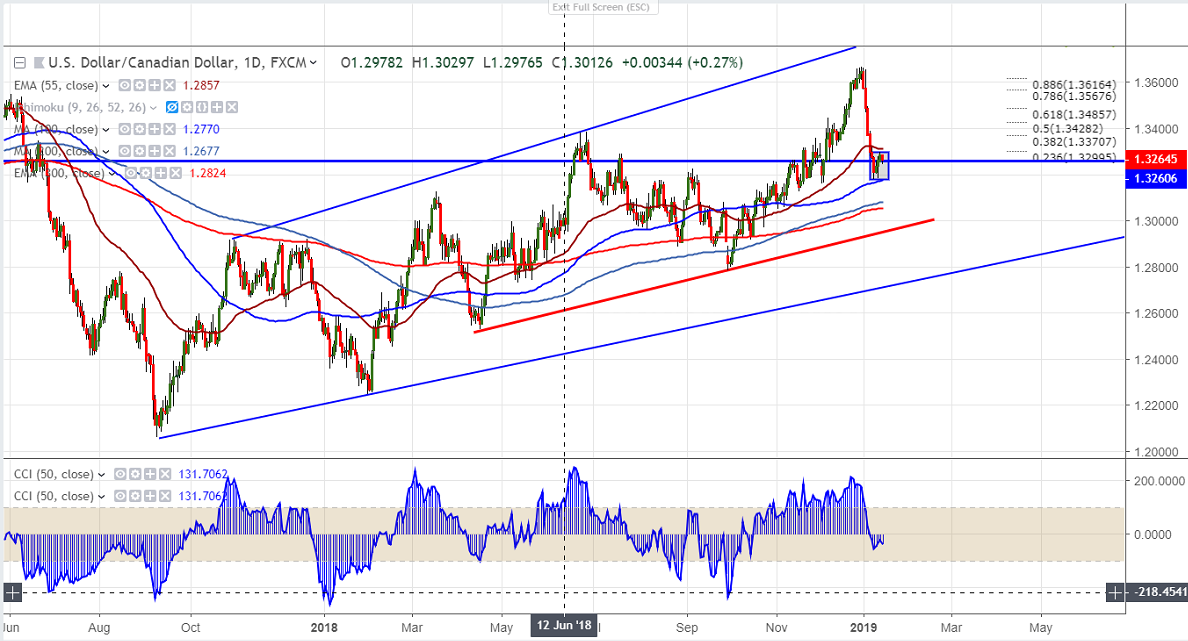 Loonie halted its weakness and was trading higher for past three trading sessions. The main reason for huge decline in US dollar was broad based US dollar selling and dovish Fed comment. But crude oil price and Bank of Canada is expected to put pressure on Canadian dollar.The pair hits low of 1.317 and shown a minor recovery. Bank of Canada has kept its interest rates unchanged at 1.75% and downgraded economic outlook on falling oil price. Crude oil price has fallen more than 40% in the past three months on increase in supply and trade war between US and China.