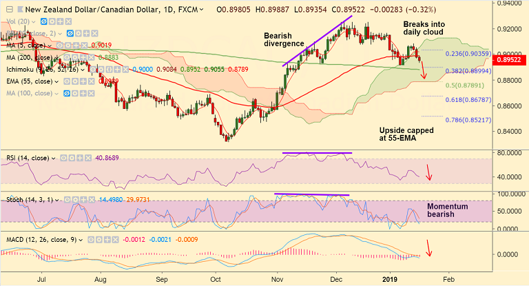 - NZD/CAD breaches cloud support and extends weakness for the 3rd straight session.