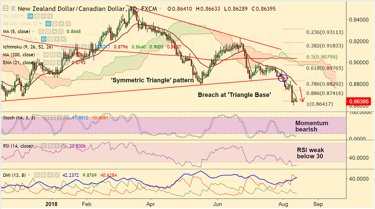 - NZD/CAD is extending range trade for the 3rd straight session, bias still bearish.