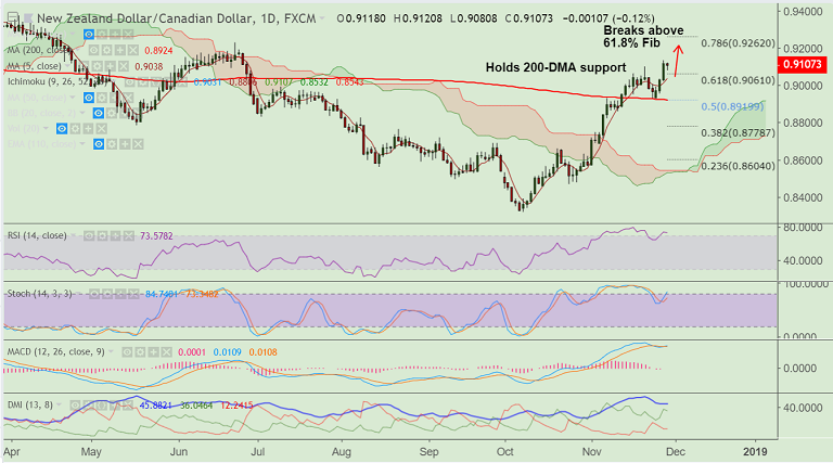 - Next bull target lies at 0.9227, while we see weakness till 0.88 on break below 200-DMA.