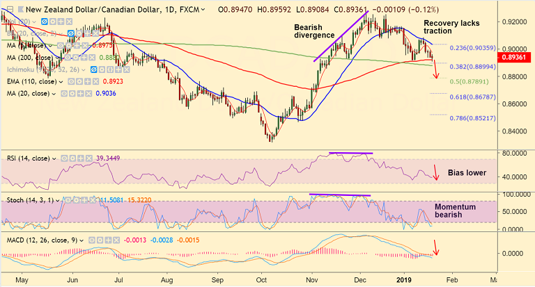 - NZD/CAD edges higher from fresh weekly lows at 0.8908, bias remains bearish.