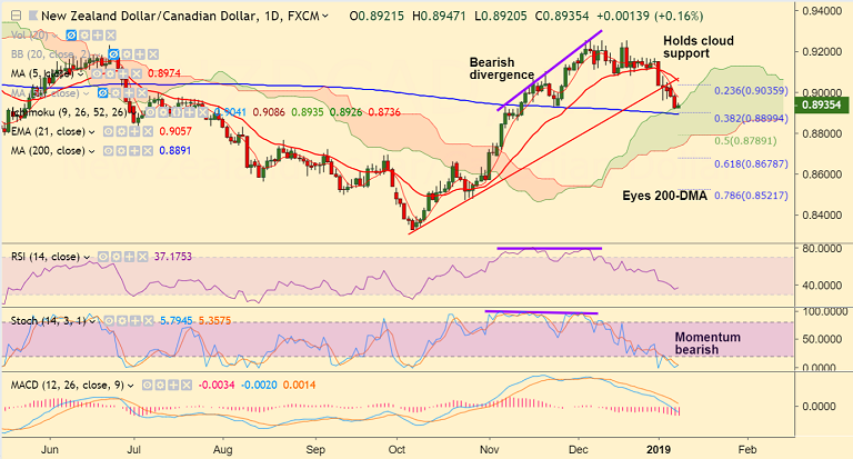Support levels - 0.8926 (cloud top), 0.8891 (200-DMA), 0.8789 (50% Fib)