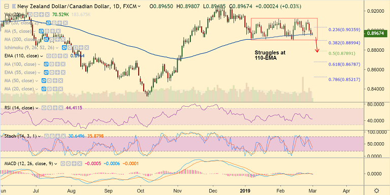 - NZD/CAD is trading at 0.8979, up 0.16% at 1225 GMT, bias neutral.