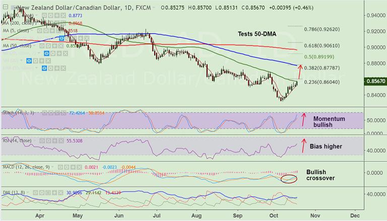 Resistance levels - 0.8574 (50-DMA), 0.86 (23.6% Fib), 0.8773 (100-DMA)