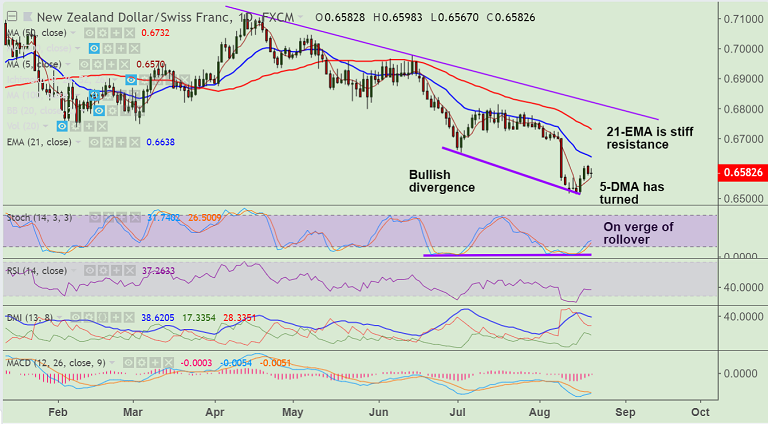 Support levels - 0.6570 (5-DMA), 0.6512 (Aug 15/16 low)