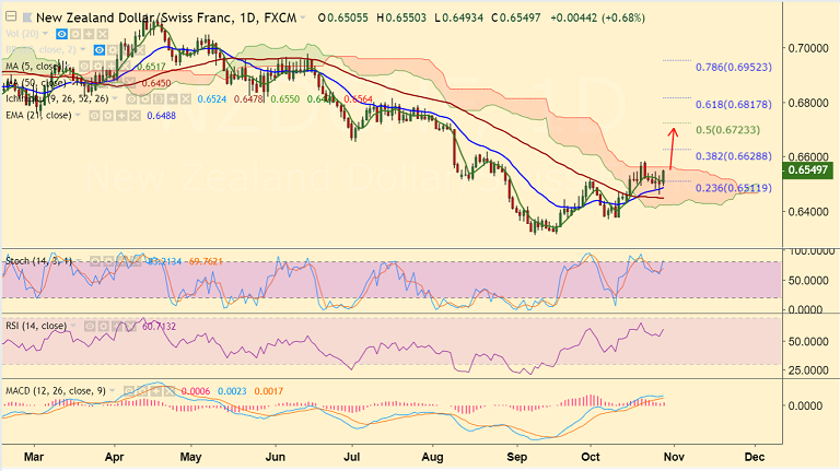 - NZD/CHF trades 0.75% higher on the day at 0.6549 at the time of writing.