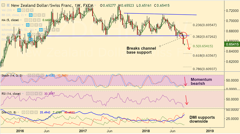 - NZD/CHF is trading a narrow range on the day, with a day's high at 0.6552 and low at 0.6516.