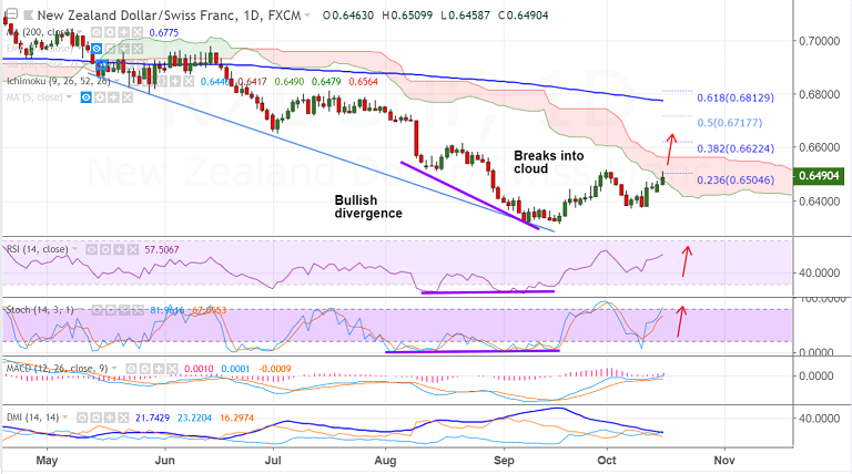 - NZD/CHF extends break above 55-EMA, trades 0.17% higher on the day.