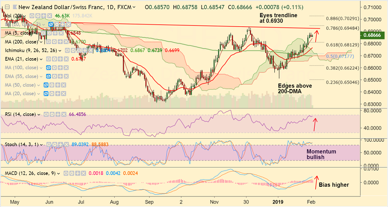 - NZD/CHF is extending range trade below 0.69 handle, bias bullish.