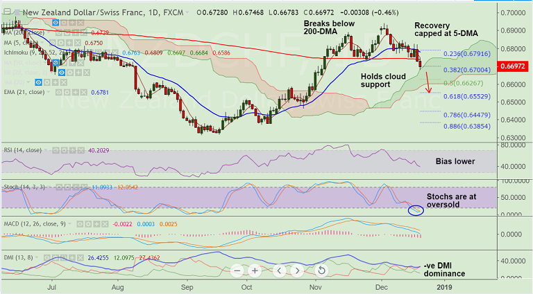 - Break below daily cloud will see test of 61.8% Fib at 0.6552. Retrace above 200-DMA will negate bearish bias.