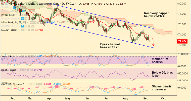 Call update: Our previous call (https://www.econotimes.com/FxWirePro-NZD-JPY-resumes-weakness-after-rejection-at-55-EMA-eyes-channel-base-at-7175-stay-short-1423201) has hit TP1.
