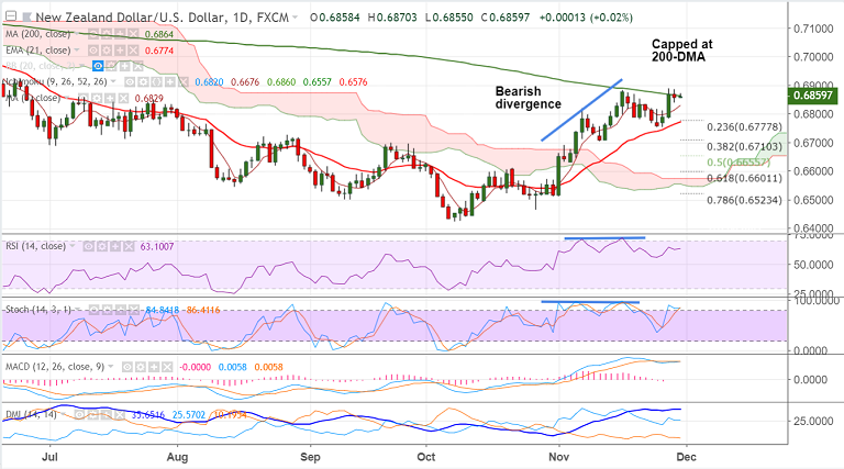 Resistance levels - 0.6864 (200-DMA), 0.6887 (Nov 28 high), 0.69