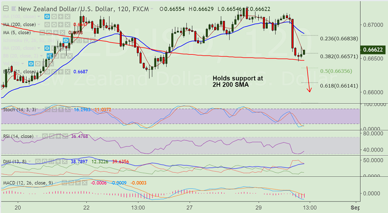 Support levels - 0.6647 (2H 200-SMA), 0.6619 (Aug 24 low), 0.66, 0.6544 (Aug 15 low)