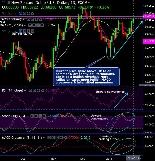 For now, the current price spike well above DMAs on the above-mentioned bullish formation, sensing stiff resistance at 0.6872 levels.