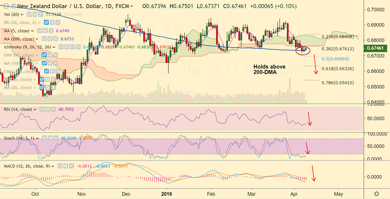 Support levels - 0.6733 (200-DMA), 0.6696 (50% Fib)