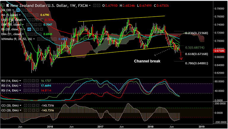 - On the flipside, 21-EMA is strong resistance at 0.6802. Break above could see upside till 0.6855.