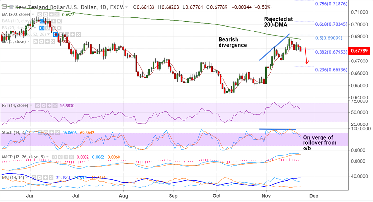 Resistance levels - 0.6801 (5-DMA), 0.6874 (200-DMA), 0.69
