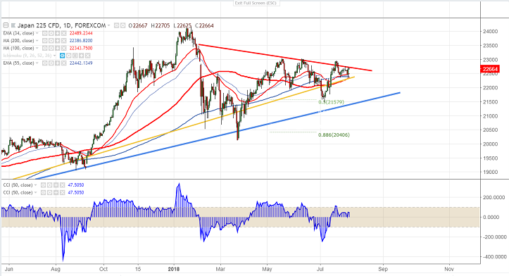 Asian markets are trading slightly higher on firmer wall street close.The slight easing trade war between US and China is supporting the global markets. The US and China is expected to restart talks on trade tariffs but US treasury has declined to comment on the status of talks with China..US market has closed slightly higher with Dow Jones at 25415 (0.43% higher) and S&P500 2816 (0.49% higher). USD/JPY which is the main indicator of geo political tension is trading slightly higher after BOJ . US futures is trading flat with Dow Jones at 25417 (0.32% lower) and S&P500 2814 (0.34% lower). Nikkei is currently trading around 22672 0.03% higher.