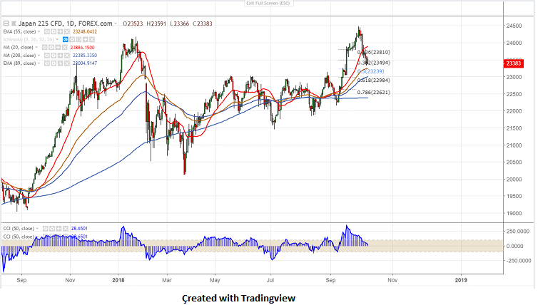 Asian markets is trading slightly lower with Nikkei declined more than 0.50%. The sell-off was mainly due to depreciation of Japanese yen and weak US markets .The downgrade of global growth by IMF said that global economy will grow at 3.7% slightly less than earlier forecast of 3.9%. Shanghai composite is still in selling mode and trading lower after a minor jump . It is currently trading around 2714 0.23% lower