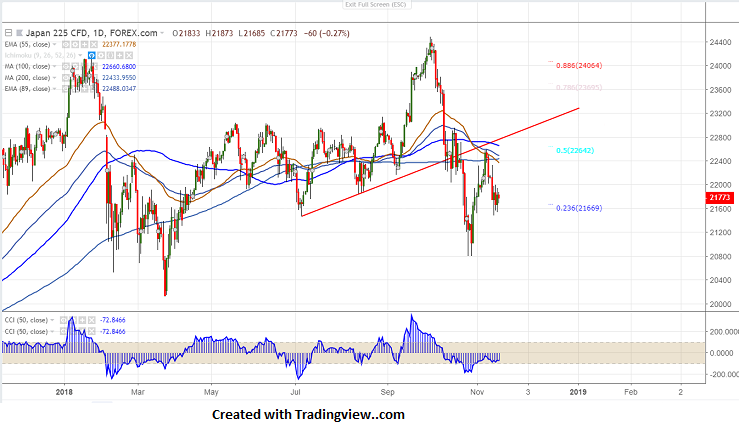 On the lower side, near term support is around 21400 and any break below targets 21000/20800.