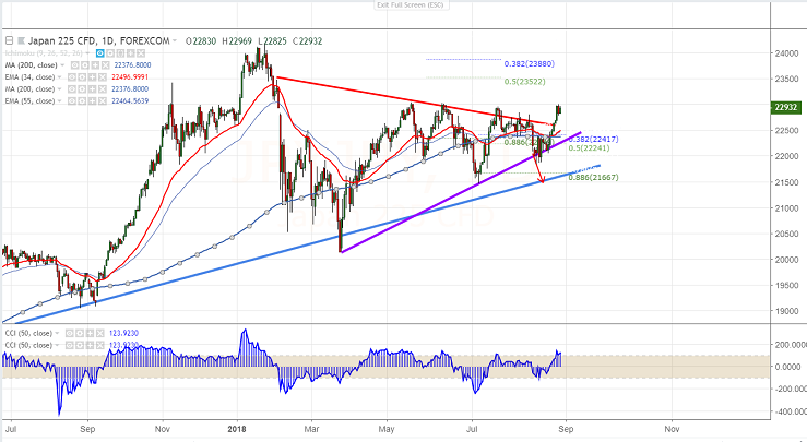 The near term resistance is around 23040 and any convincing break above will take the index to next level till 23200/23480.