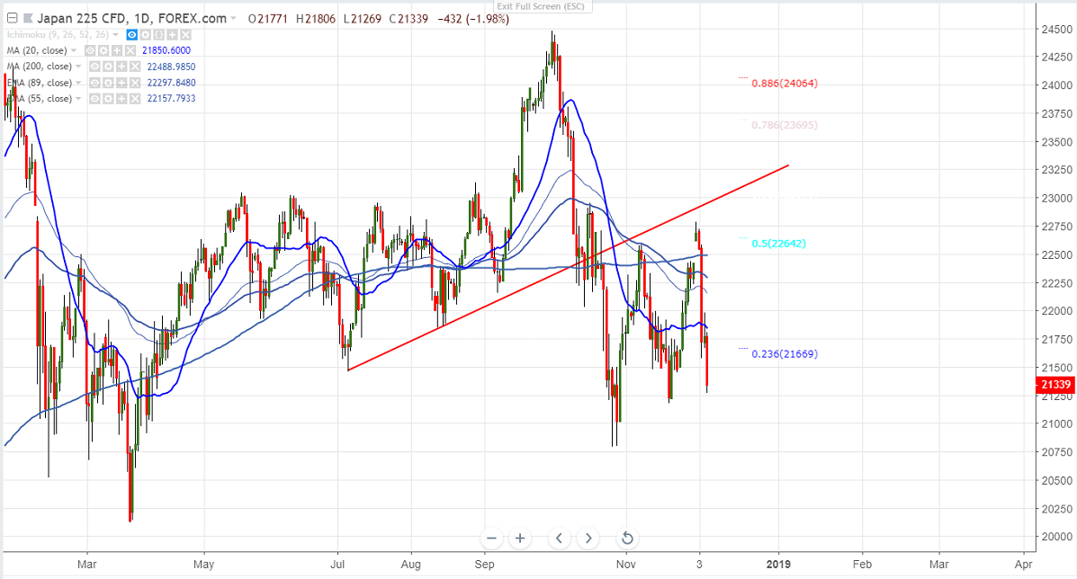 Asian markets is trading weak following footsteps of US futures. US futures is trading extremely lower and has lost more than 2% on yield curve inversion. The US 10 year yield has lost trading around 2.89%. The spread between US 10-year and 2-year yield has reduced further to 10 basis point.Shanghai is trading lower and is currently trading around 2612 (1.40% lower).Nikkei is showing a minor recovery after a 100 point fall and is currently trading around 21349 (1.97% lower) and is currently trading around 21349.