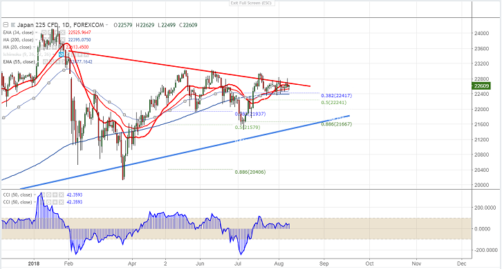 Asian markets are trading mixed with Nikkei slightly weak on strong yen and improper inspection by automakers. Japanese automaker Mazda corp and Yamaha lost 1.3% and 6.1% respectively after it has submitted reports to Japan’s transport ministry that it has done improper test on fuel economy and emission. US markets closed slightly higher with Dow Jones 25583 (0.18% lower) and S&P500 2857 (0.03% lower).Shanghai has once again recovered after hitting low of 2692 almost a double bottom. The index jumped more than 100 points from the low. It is currently trading around 2793 1.78% higher. USD/JPY which is the main indicator of geo political tension is trading slightly lower on rising trade war tension . US futures is trading flat with Dow Jones at 25567 (0.11% higher) and S&P500 2855 (0.11% higher). Nikkei is currently trading around 22604 0.10% higher.