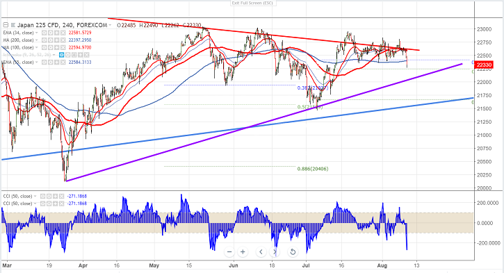 Asian markets are trading mixed with Nikkei slightly weak amid better than expected Japan’s GDP. The decline was mainly led by chip makers after Morgan stanley. The trade talks happened between US and Japan yesterday has failed to reach agreement is also putting pressure on markets. US markets closed slightly higher with Dow Jones 25509 (0.29% lower) and S&P500 2853 (0.14% lower).Shanghai is showing small amount of profit booking after hitting high of 2805. It is facing resistance around 2807 (200- H MA) and any break above targets 2915. USD/JPY which is the main indicator of geo political tension is trading slightly lower on rising trade war tension . US futures is trading flat with Dow Jones at 25405 (0.33% lower) and S&P500 2840 (0.35% lower). Nikkei is currently trading around 22315 1.28% lower.