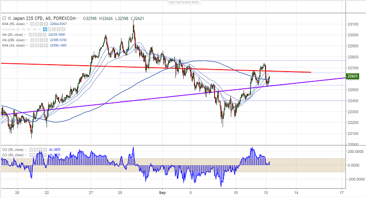 Asian markets are trading slightly lower and hits 14 month low with Nikkei lost almost 0.50% on escalating trade war between US and China and trade talks outcome between US and Japan. US markets closed slightly higher with Dow Jones at 25971 (0.44% higher) and S&P500 at 2887 (0.37% higher). Nikkei index selling was mainly due to decline in chip related stocks and machine toll makers on weak industry data. US futures are currently trading flat with Dow Jones 26000 (0.05% higher) and S&P500 2888 (0.05% higher). Nikkei is trading around 22621 (0.40% lower).