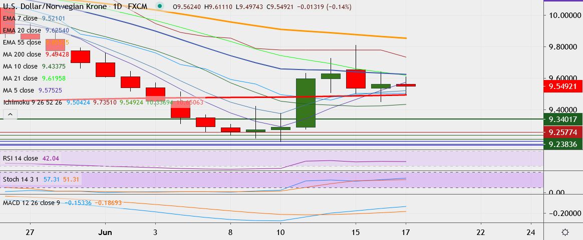 - Immediate resistance is located at 9.6334 (20-EMA), close above could take it till 9.6983.