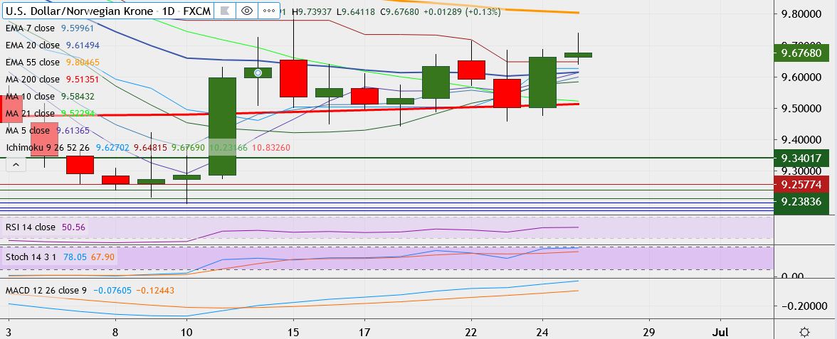 - On the downside, support is around 9.6270, break below could take it till 9.6084 (20-EMA).