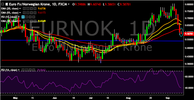 We prefer to take short position on EUR/NOK around 9.6000, stop loss at 9.6200 and target of 9.5420.