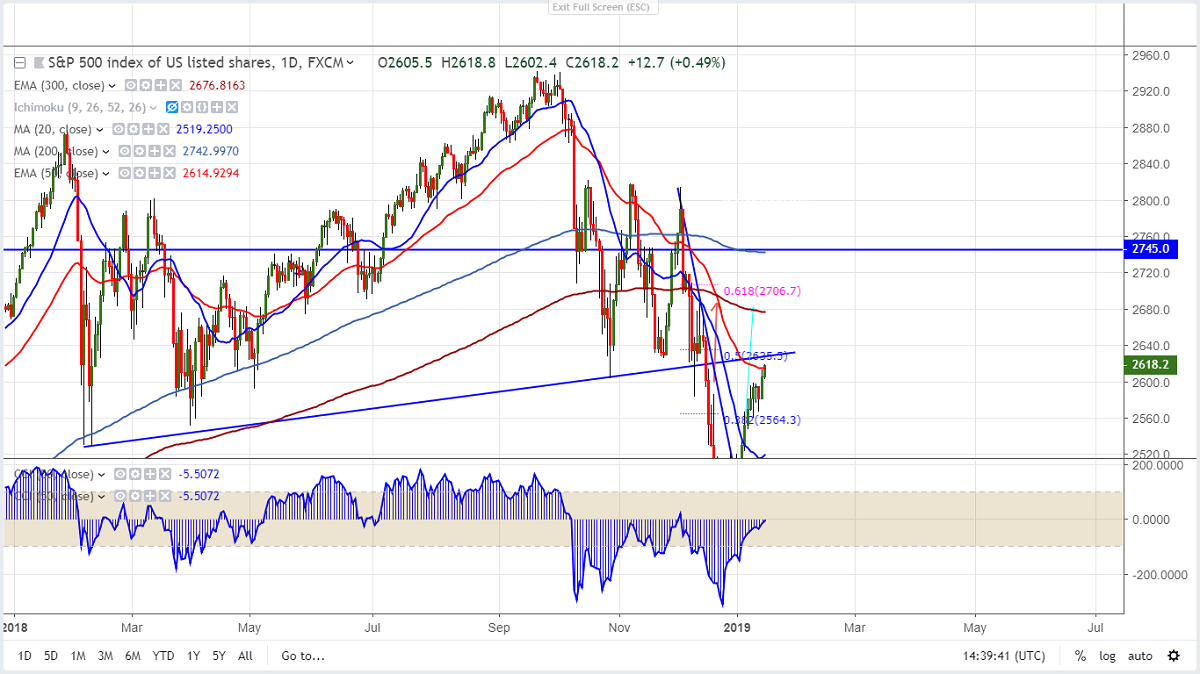 S&P500 trades higher for 8th consecutive day and jumped more than 175 points in four trading session. The index hits intraday high of 2616 and is currently trading around 2614.50.